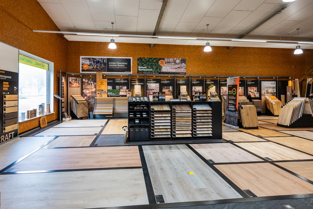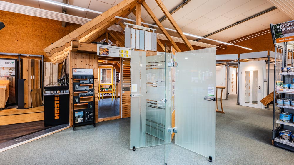 Unsere große Auststellungsfläche bietet die Möglichkeit ein weites Spektrum an Holz- und Designbodenbelägen, Türen, Fenstern Fassadenprofilen, Holzbaubedarf und vieles weiteres direkt anschauen zu können.