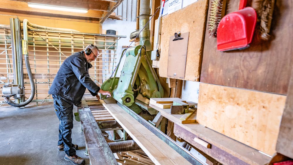 Wir übernehmen den genauen Zuschnitt, das Hobeln, die Ausarbeitung von Eckverbindungen oder Arbeitsplattenausschnitte, auf Wunsch für Sie.