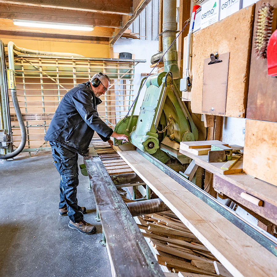 Wir übernehmen den genauen Zuschnitt, das Hobeln, die Ausarbeitung von Eckverbindungen oder Arbeitsplattenausschnitte, auf Wunsch für Sie.